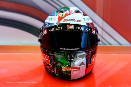 Savā pēdējā posmā itāļu komandas sastāvā Alonso nolēmis startēt ar veltījumu "Ferrari". Spānijas sportista ķivere šīm sacensībām ieguvusi jaunu krāsojumu, bet to rotā vienībā iesaistīto cilvēku paraksti, "Ferrari" boksu celiņa fotogrāfija un Itālijas karogs.