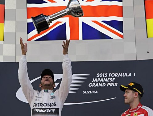 Piecus posmus pirms čempionāta beigām, Hamiltons savu tuvāko sekotāju un komandas biedru Niko Rosbergu apsteidz par 48 punktiem.