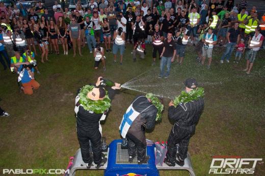 Pusfinālā sīvā cīņā un ar pārbrauciena palīdzību soms Rintanens pieveica Eglīti, tomēr otrajā pusfinālā pārāks par Norvēģijas čempionu Ole Jāgeru izrādījās Jēkabsons. Tādējādi Jēkabsons cīņā par uzvaru tikās ar Rintanenu, bet cīņā par trešo vietu savā starpā sacentās Eglīte un Jāgers. Jāatzīmē, ka jau pagājušajā Drift Allstars posmā cīņa par trešo vietu bija starp šiem diviem pilotiem un arī rezultāts šoreiz tāds pats – Eglīte bez problēmām pieveica Jāgeru un kāpa uz trešā goda pjedestāla pakāpiena. Cīņā par uzvaru Jēkabsonam nācās piekāpties soma Rintanena priekšā, tomēr par to nav ko bēdāties, jo tieši somu braucējs šobrīd ir labākais drifteris Eiropā.