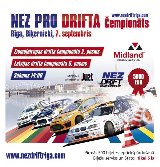 Jau šajā nedēļas nogalē 7. septembrī - Biķernieku norisināsies NEZ PRO drifta čempionāta otrais un Latvijas drifta čempionāta sestais un noslēdzošais posms. Uz starta stāsies labākie Ziemeļeiropas braucēji, to starpā arī tādi skatītāju favorīti kā igaunis Henri Puhmas, kurš līdz šim startējis ar veco Audi Coupe, un soms Teemu Peltola, kurš pirmo reizi Latvijā būs redzams ar savu jauno Mercedes dīzeļa universālu.