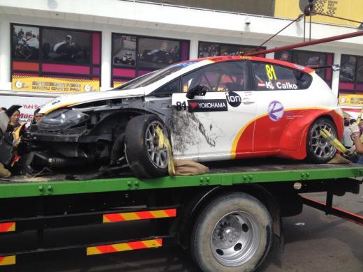 Tomēr otrā sacīkste Calko beidzās jau drīz pēc starta, kad F1 pilota Maksa Čiltona jaunākā brāļa Toma Čiltona un Norberta Mičelica sarīkotā sadursme izraisīja masveida avāriju. Trase tika nosprostota, daudzas mašīnas sasistas un viens no tiem, kas nespēja no avārijas izvairīties, bija arī Calko. Lai gan tika izkārti sarkanie karogi un sacensības apturētas, līdz atkārtotajam startam nebija cerību salabot ievērojami bojāto SEAT Leon WTCC automobili.