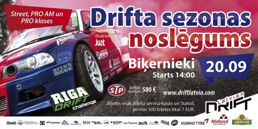 Drifta sezona lēnām, bet nepielūdzami tuvojas beigām, tādēļ jau nākamnedēļ Biķernieku trasē norisināsies vērienīgās Latvijas drifta sezonas noslēgumu sacīkstes. 20. septembrī tiks aizvadīti Latvijas drifta kausa sestais un Latvijas drifta čempionāta „RIGA DRIFT CHALLENGE” septītais posms, kas nozīmē, ka uz starta izies vairāk nekā 60 Street, ProAm un PRO klašu piloti.