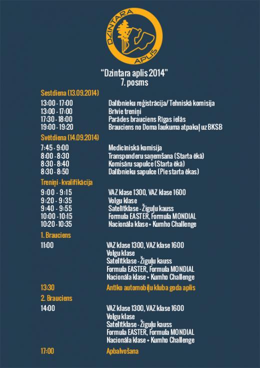 Šo svētdien, 14.septembrī sākot no pl.11.00 Biķernieku trasē risināsies vēsturisko spēkratu autošosejas sacensību „Dzintara Aplis 2014” noslēdzošais posms, kurā tiks aizvadītas pēdējās sīvās cīņas, lai noskaidrotu 2014.gada sezonas čempionus. Vienlaikus ar „Dzintara Aplis 2014” septīto posmu Biķernieku trasē startēs arī „Žiguļu Kauss 2014” (VAZ Tuss) 8.posms, Latvijas čempionāta posms nacionālajā klasē, Volgu klasē un “Kumho Challenge”.