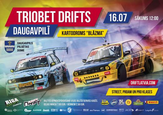 15.jūlijā tiks aizvadīti oficiālie treniņi, bet 16 jūlijā Daugavpilī notiks Triobet Latvijas drifta čempionāta posms un Triobet Latvijas drifta kausa posms.