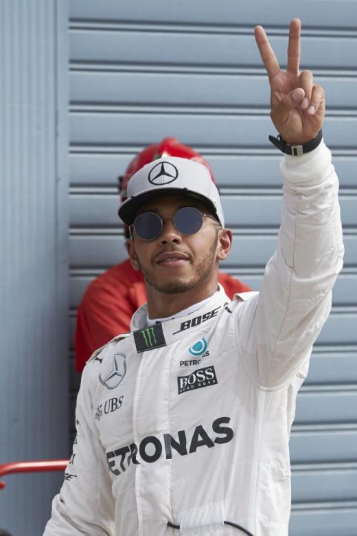 Hamiltons Moncas trases apli veica minūtē un 21,135 sekundēs, par 0,478 sekundēm apsteidzot savu komandas biedru Niko Rosbergu.