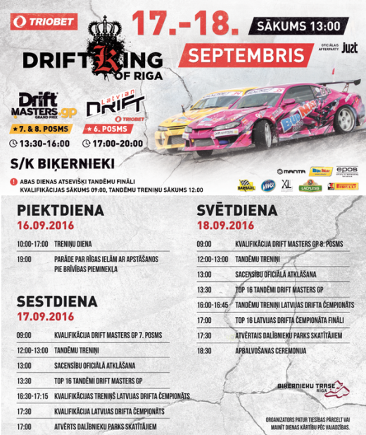 Jau sestdien un svētdien visi laipni aicināti uz Biķernieku trasi kur pirmo reizi spēcīgākais Polijas drifta seriāls notiks Biķerniekos, papildus tam notiks arī Latvijas drifta čempionāts, šī būs pirmā reize, kad Biķerniekos vienā nedēļas nogalē notiks 3 drifta sacensības, un PRO klase brauks 2 dažādas trases konfigurācijas, solot skatītājiem abu dienu laikā vairāk kā 150 tandēmu braucienus!