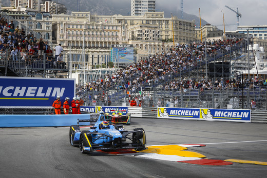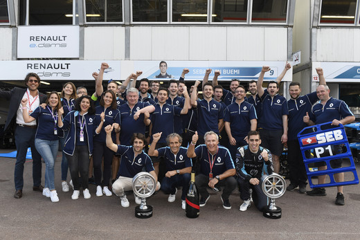 Renault e.dams komanda atkal bauda uzvaras garšu elektriski darbināmo bolīdu sacīkšu E-formulas Monako posmā, kurā Sebam Buemi (Séb Buemi) izdevies noturēt vadošās pozīcijas visā sacīkšu gaitā, no starta līdz finišam. Savukārt Niko Prostam (Nico Prost) izdevies no aizmugurējām starta pozīcijām uzrāpties līdz pat 9. vietai.