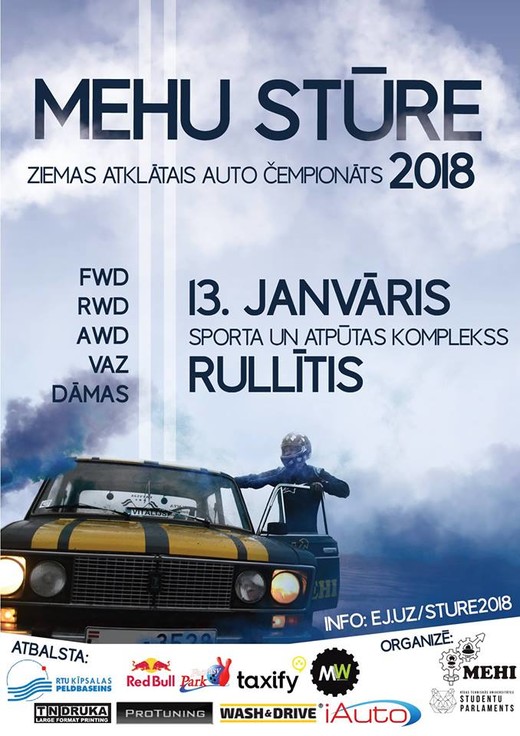 Līdz pat 13. janvārim var pieteikt dalību RTU Mašīnzinību, transporta un aeronautikas studentu pašpārvaldes rīkotajam autosporta pasākumam Mehu stūre 2018. Organizatori lūdz pasteigties un brīdina, ka dalībnieku skaits ir ierobežots!