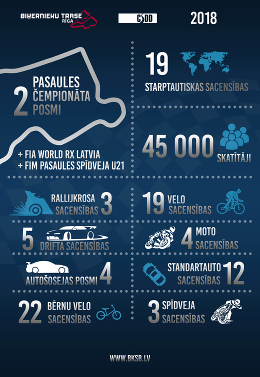 Šogad trasē notika divi augsta līmeņa Pasaules čempionāta posmi - “Neste RX Latvia” Pasaules rallijkrosa čempionāts un FIM Pasaules Spīdveja U21 komandu pusfināla sacensības. Par gada lielāko notikumu autosportā neapšaubāmi var uzskatīt Pasaules rallijkrosa čempionāta Biķernieku posmu. Šogad 2 dienās sacensības apmeklēja ap 29 000 skatītāju. Rīgas posmā piedalījās 72 piloti no 13 pasaules valstīm, un sacensības tika translētas 77 pasaules televīzijas kanālos.