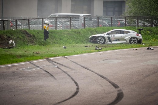 "Formula klases brauciena sākumā tēvs ar dēlu Jāks un Tāvi Kūli, iebraucot ozola līkumā, saķērās un izslīdēja no trases. Sacīkstes tika pārtrauktas."