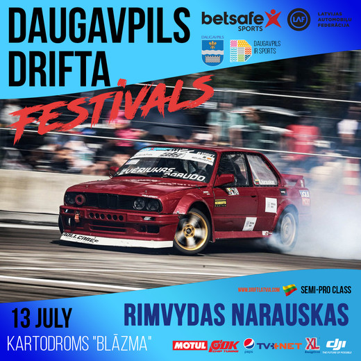 12.jūlijā tiks aizvadīti oficiālie treniņi jau no 13:00 dienā, bet 13. jūlijā kartodromā “Blāzma” notiks Betsafe Latvijas drifta kausa 4.posms un Lietuvas drifta kausa street klases ieskaites posms.