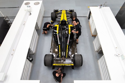 Mūsdienu F-1 sacīkšu auto sastāv no 14500 komponentēm, to dizainam tik patērētas apmēram 150 tūkstoši cilvēkstundu. 90% no "Renault" formulu detaļām tiek projektētas un izgatavotas tepat uz vietas Enstonā. Aerodinamikas departamentā strādā 130 darbinieki. Viņi ir atbildīgi par katras detaļas projektēšanu, modelēšanu datorā un pārbaudi vēja tunelī. Katru nedēļu vēja tunelī tiek pārbaudītas 600 detaļas. Mašīnu aerodinamiskajiem risinājumiem FIA noteikusi ļoti stingrus noteikumu rāmjus, tādēļ visas formulas skatītājam no malas izskatās vienādas, taču katra komanda atrod līdz milimetriem atšķirīgas nianses katrai formulas detaļai, izmantojot vēja tuneli. Lai ierobežotu izmaksas, FIA ir noteikusi vēja tuneļa izmantošanas ierobežojumus – ne vairāk kā 520 reižu 8 nedēļu periodā, jeb 65 reizes nedēļā. Kā atzinās aerodinamikas departamenta darbinieki, šeit eksperimentiem tiek pakļautas arī detaļas, kas noskatītas no konkurentiem, galvenokārt jau pēdējo gadu līderiem "Mercedes".
