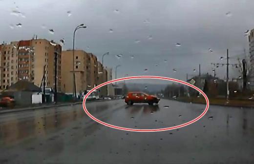 Veicot apgriešanās manevru, sarkanais auto piepeši strauji paātrinās un izraisa sadursmi ar otru automobili, notriecot to no ceļa. Vadītājs, kurš nofilmējis notikušo savā video reģistratorā, domā, ka meitene, kas atradās pie stūres sarkanajam auto, sajauca pedāļus.