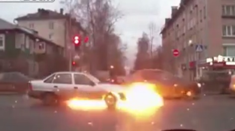 Krustojumā aizdegas automašīna, vadītājs glābjas bēgot.