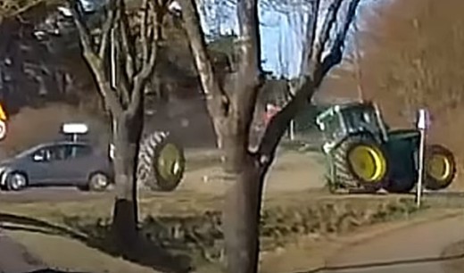 Nobraucot no galvenā ceļa, lauksaimniecības tehnika pazaudē riteni. Jāuzteic vieglās automašīnas vadītājs, kas neapjūk un pagūst pabraukt uz priekšu, lai smagā detaļa neietriecas tā sānos. Lasīt vairāk