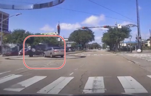 Vieglais auto iebrauc krustojumā pie sarkanās gaismas un izraisa sadursmi ar pikapu, apgāžot to uz sāniem. Lasīt vairāk