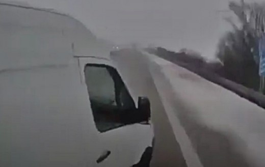Pa labo joslu braucošais video autors tiek nostumts no ceļa, kad apsteidzējs zaudē kontroli pār savu spēkratu. Lasīt vairāk