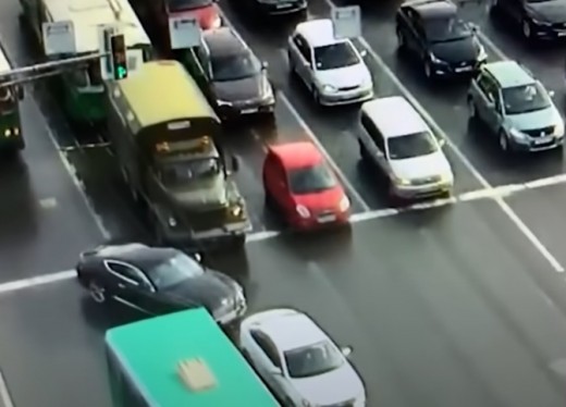 Video redzama neliela avārija, kurā ZIL kravas auto nedaudz pieskaras dārgajai britu kupejai. Lasīt vairāk