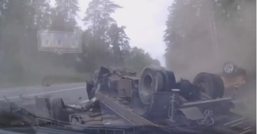 Nissan vadītājs par vēlu pamana ceļa remontētāju kravinieku. Notiek sadursme un vadītājs tiek izmests no mašīnas. Lasīt vairāk