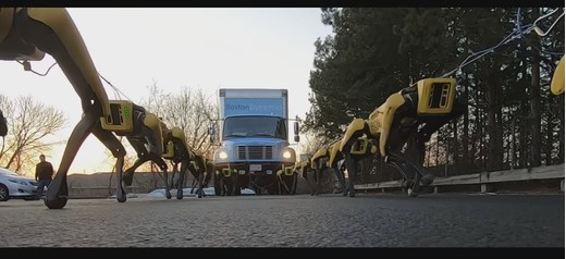 Kompānijas BostonDynamics izstrādātais Spotpower (SP) daudzfunkcionālais robots noder dažādiem darbiem. Lai pavilktu šāda izmēra kravas auto nepieciešami 10 "robotsuņi". Lasīt vairāk