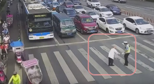 Redzot, ka cienījamu gadu gājējs nonācis bīstamā situācijā, nepagūstot pāriet ielu, kamēr deg atļautais signāls, policists piedāvā palīdzību un saņēmis atļauju, pārnes sirmgalvi uz savas muguras. Lasīt vairāk