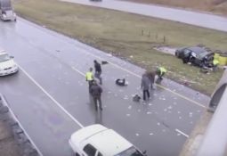 Steidzīgs "BMW" apvidnieka vadītājs apsteidz video autoru pa labo pusi, taču nespēj savaldīt savu auto un uztriecas kraviniekam, kas nobrauc no ceļa un apgāžas. Lasīt vairāk