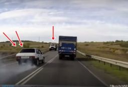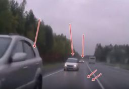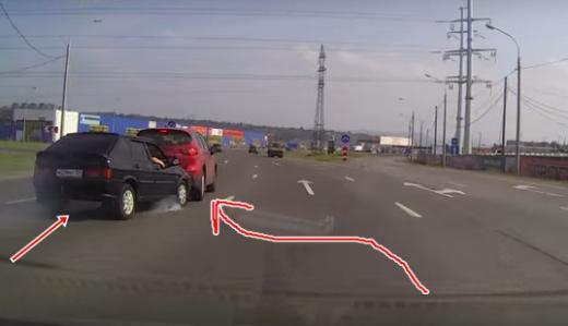 "VAZ" bremzē riteņiem kūpot, taču nespēj izvairīties no sadursmes ar "Mazda," kas negaidot iznirst no filmētāja aizsega. Lasīt vairāk