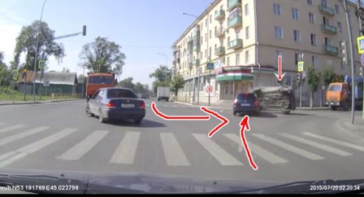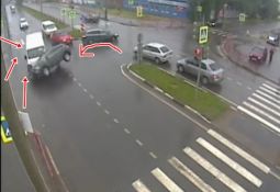 "Chevrolet Niva" veic kreiso pagriezienu un nokļūst ceļā "Lada Kalina," kas iebrauc krustojumā mirkli pēc tam, kad luksoforā sāk mirgot zaļais signāls. Lasīt vairāk
