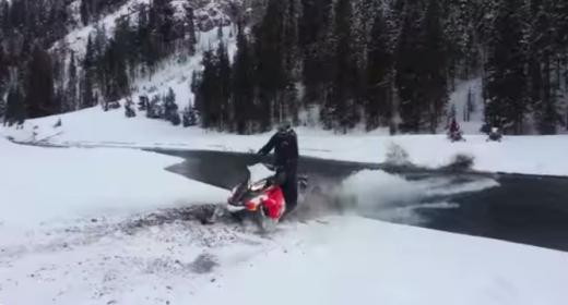 Kā var redzēt video, sniega motocikla vadītājām neizdodas pārvarēt upi. Lasīt vairāk