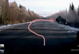 "Audi" uzlido gaisā un apmetot vairākus kūleņus paliek ceļmalas grāvī pēc tam, kad vadītājs uztriecas smagās automašīnas piekabes riteņiem, nespējot noreaģēt uz kravinieka negaidīto pārkārtošanās manevru (skatīt no 0:25). Lasīt vairāk