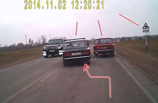 Epizode, kas varēja beigties daudz ļaunāk - priekšā braucošais VAZ, kas buksē otru VAZ ar nestrādājošu motoru un visticamāk arī bojātu bremžu sistēmu, ieraugot šķērsli bremzē, bet velkamā auto vadītājs instinktīvi rauj pa kreisi, lai neietriektos tā aizmugurē. Lasīt vairāk