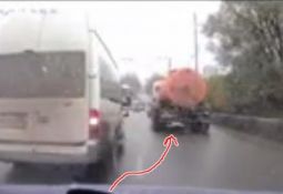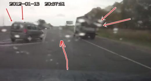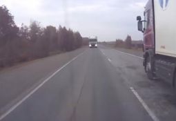 Piekrautam Kamaz baļķvedējam atkabinās (skatīt no 0:20) piekabe, izbārstot kravu pa ceļu un apmali. Laimīgā kārtā tas notiek dažas sekundes pēc tam, kad baļķvedēju apdzinis satiksmes autobuss. Lasīt vairāk
