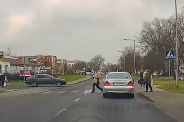 Mercedes vadītājs turpina ceļu it kā gājēju pārejas un gājēju uz tās pat nebūtu. Lasīt vairāk
