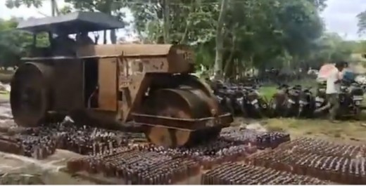 Indijas policija izmanto ceļa rulli, lai iznīcinātu nelegālos alkohola krājumus. Lasīt vairāk