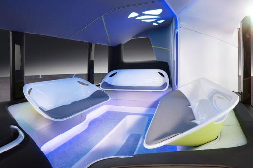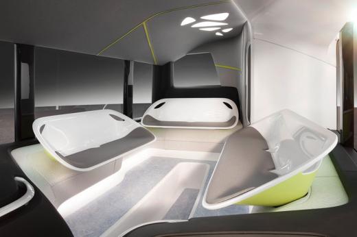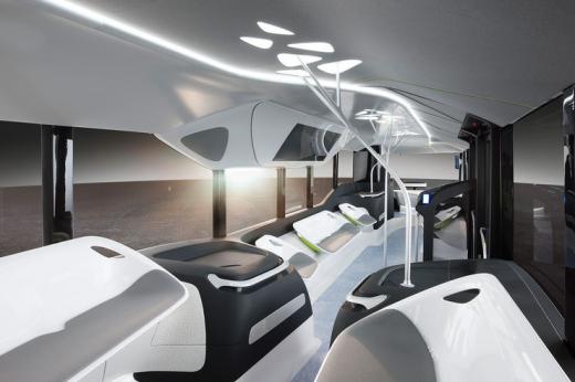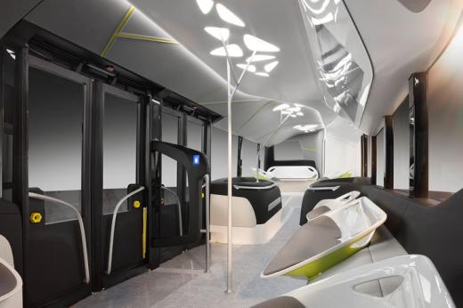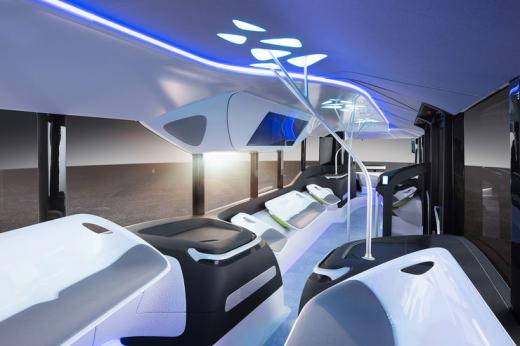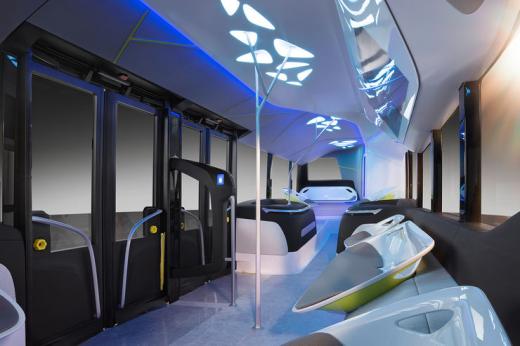 Future Bus salonā iebūvēti patiešām futūristiska izskata pasažieru sēdekļi, pie griestiem liels informācijas ekrāns, bet bagāžas novietošanai paredzētajos plauktos integrētas nišas viedtālruņu uzlādēšanai.