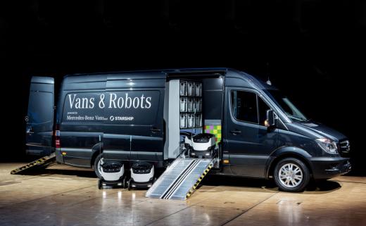 Mercedes-Benz un inovāciju uzņēmums Starship Technologies vienojušies kopīgi attīstīt Robovan – pasaulē pirmo transporta sistēmu, kurā integrējot speciāli pielāgotus mikroautobusus – “mātes kuģus” un autonomus piegādes robotus būs iespēja efektīvāk piegādāt sūtījumus cilvēkiem.