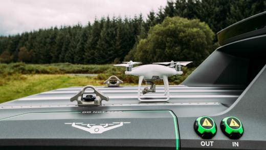 Komplektā arī divi noņemami akumulatori, ko var izmantot kā alternatīvu benzīna ģeneratoram, kā arī "DJI Phantom 4" kvadrokopters, kas paredzēts apkārtnes izlūkošanai. Drons var darboties 6 km rādiusā, atrodoties gaisā līdz pat 30 minūtēm, savukārt attēls, ko uzņem lidaparāta kamera tiek pārraidīts uz automašīnas multimediju iekārtas ekrānu.