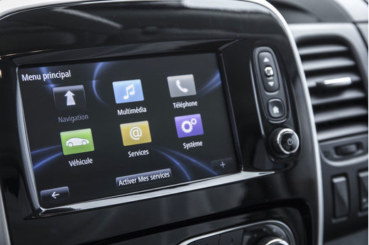Priekšējā panelī atrodama virkne ar praktiskām un izteiksmīgām detaļām, iekļaujot stūri ar ādas pārvalku, virkni glabāšanas vietām un melnām un hromētām ieliktņiem. Uz 7 collu lielā ekrāna ir redzama MediaNav Evolution navigācijas sistēma, R-Link Evolution ar Android Auto, kā arī atpakaļskata kamera (atkarībā no versijas).