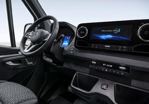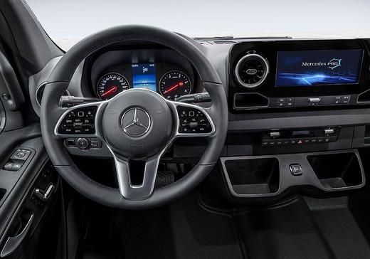 Visdārgākajā aprīkojuma versijā "Sprinter" stūre līdzināsies S-klases limuzīnā redzētajai – tā būs smalki nostrādāta, komplektēta ar skārienjutīgās vadības sekcijām un pogām, ventilācijas/apsildes izvadiem būs hroma apmalīte, bet multimediju sistēmas ekrāna izmērs pieaugs līdz 10,25 collām.
