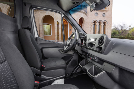 Bāzes versijā Mercedes komerctransportlīdzeklis iegūs visai askētiski iekārtotu kabīni ar cieta plastikāta apdari, bez radio un tikai diviem ventilācijas/apsildes pievadiem. Niša pie vējstikla šajā gadījumā ir vaļēja, bet stūrei nav nekādu papildu funkciju.