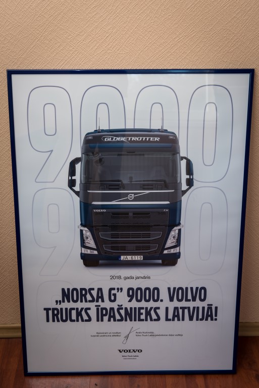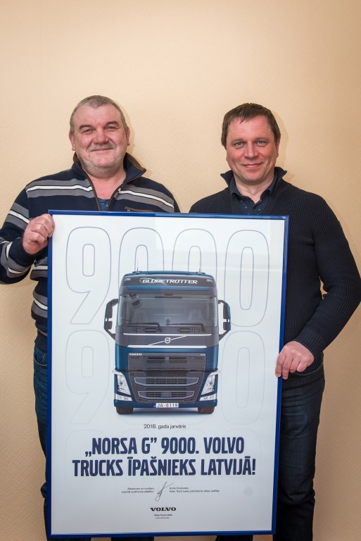 “Volvo Truck Latvia” ir pārliecinošs kravas automašīnu tirgus līderis Latvijā jau daudzus gadus. Par to liecina arī fakts, ka šī gada sākumā tika piegādāta 9000. Volvo kravas automašīna. Veiksmīgais pircējs bija kravu pārvadājumu uzņēmums “Norsa G”.