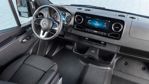 Autovadītāja darba vieta ir plaša, praktiska. Tā paredzēta konkrētās nozares atbilstošo prasību izpildei. Jaunajā Sprinter ir ergonomiski sēdekļi, automašīnas dzinēja iedarbināšanas funkcija bez atslēgas un uzlabota gaisa kondicionēšanas sistēma. Daudzveidīgie nodalījumi parūpēsies par to, lai viss atrastos savās vietās. Maksimālā kravas ietilpība ir 17 m3 ar pilno masu līdz pat 5,5 tonnām.