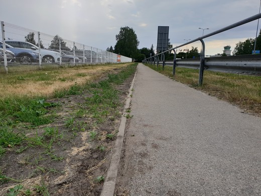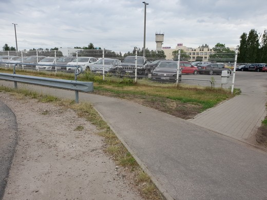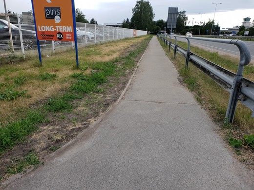 Gājēju ietve no lidostas "Rīga" maksas stāvvietas uz lidostu 4.06.2018. Foto: iAuto.lv