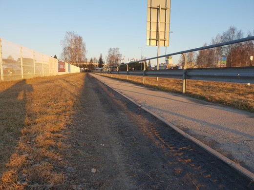 Gājēju ietve no lidostas "Rīga" maksas stāvvietas uz lidostu 11.04.2018. Foto: iAuto.lv