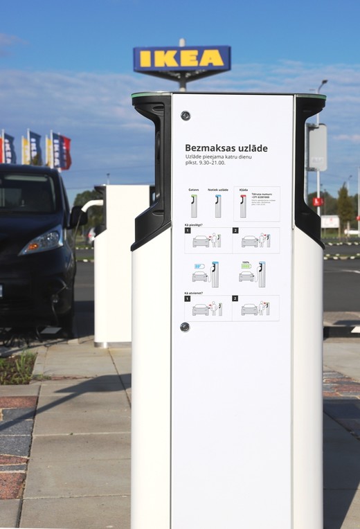 IKEA veikala darbības uzturēšanā un arī elektroautomobiļu uzlādes vietā tiek izmantota zaļā enerģija. Elektrību uzlādei nodrošina IKEA, bet automobiļu īpašniekiem ir jāizmanto savi lādēšanas vadi.