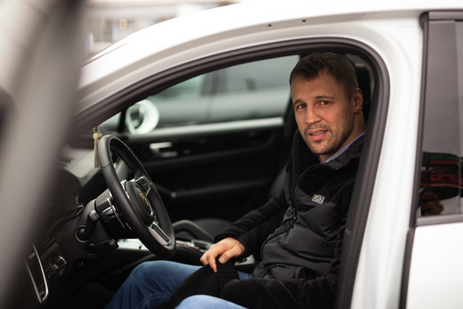 Bokseris brauc ar metāliski baltas krāsas apvidus sporta automašīnu Porsche Cayenne Coupé, kas līdzīgu automašīnu vidū tiek uzskatīts par atlētu, pateicoties tikai Porsche raksturīgajām formām. Brieža automašīna aprīkota ar 6 cilindru V veida motoru ar turbokompresoru. Dzinēja darba tilpums ir 3,0 litri, maksimālā jauda – 250 kW (340 Zs), kamēr maksimālais griezes moments ir 450 Nm. Spēkrats ātrumu līdz 100 km/h spēj uzņemt 6,0 sekundēs, un tā maksimālais ātrums ir 243 km/h. Automašīna aprīkota ar Bose visaptverošo skaņas sistēmu, Sport Chrono pakotni, LED Matrix priekšējiem lukturiem ar Porsche Plus dinamisko gaismas sistēmu, 21 collu RS Spyder Design diskiem ar arku paplatinājumiem eksterjera krāsā un citām papildfunkcijām.