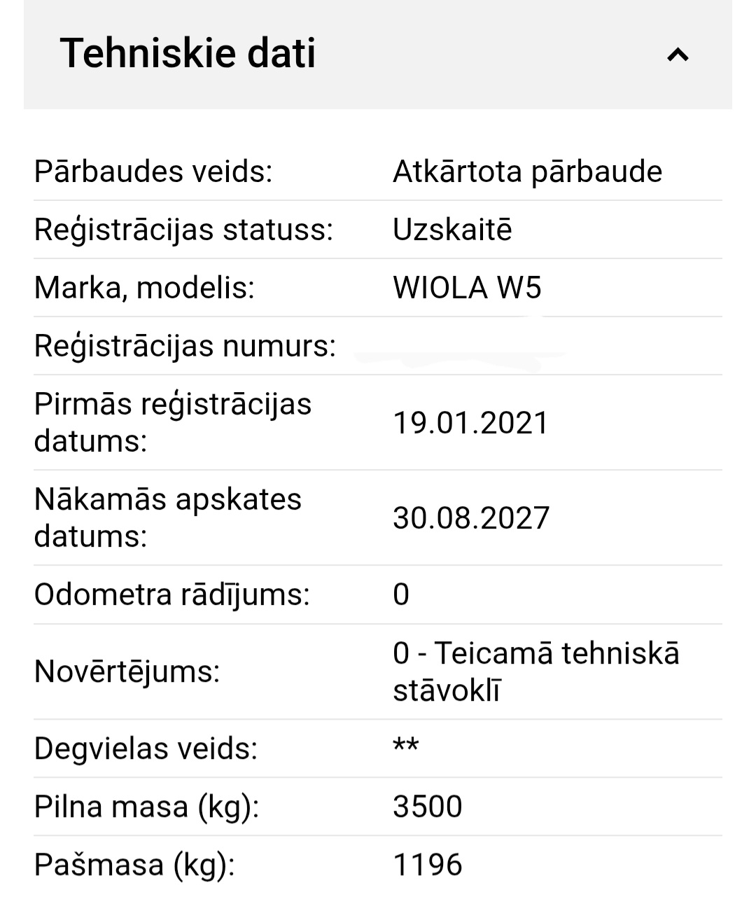 Pašmasa (bez aprīkojuma un bez šķidrumiem): ap 6 100 – 6 500 kg (atkarībā no komplektācijas un riteņu tipa).