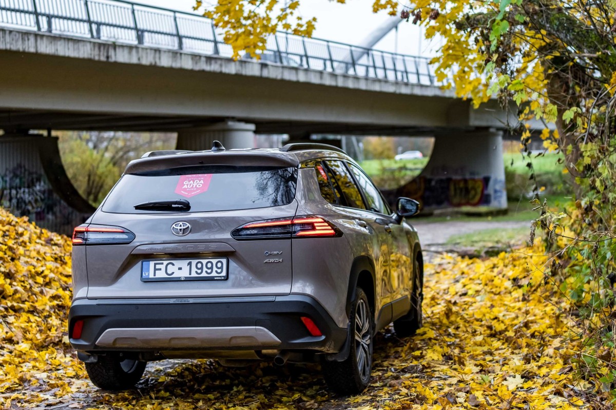 Otrs “Toyota” modelis, kas piedalījās bezceļu braukšanā, bija modernizētais “Corolla Cross” pilnpiedziņas versijā. Lai arī 16 centimetru klīrenss šim modelim ir visai pieticīgs braukšanai bezceļā, auto pilnpiedziņas sistēma ar “Corolla Cross” ļauj izbraukt arī ko sarežģītāku par grants ceļu - dubļaina stiga mežā, meklējot sēņu vietas, kārtīgi piesnidzis pagalms u.tml. Pilnpiedziņas modelī ir 180 zirgspēku hibrīdsistēma, kur priekšējo asi piedzen benzīna motors kopā ar transmisijā iebūvētu elektromotoru, bet aizmugurējo asi piedzen atsevišķs elektromotors. Līdz ar to braukšana pa smilšu vannām noritēja gan dzinēja skaņas pavadībā, gan pilnīgā klusumā, kad ieslēdzās elektriskais režīms. “Toyota Corolla Cross” maksā no 32 800 līdz 41 500 EUR.