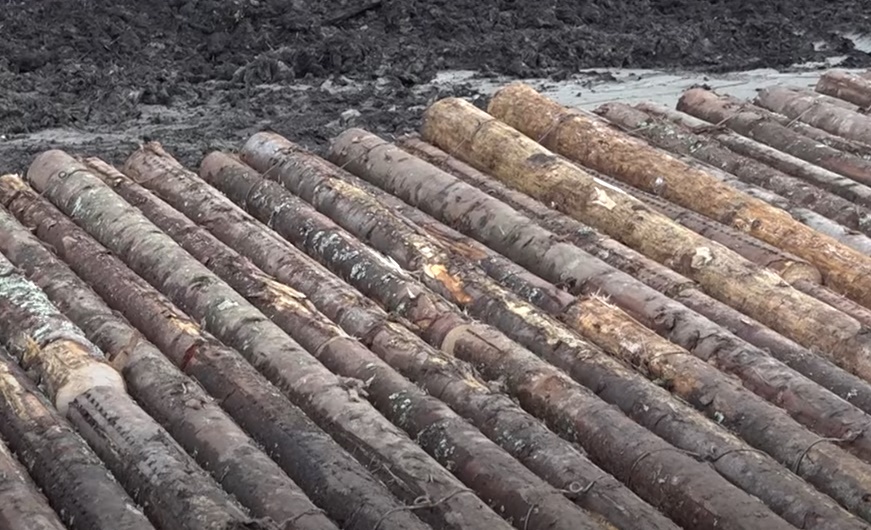 Izmantojot senu metodi, “Latvijas Valsts meži” Ērgļu pusē meža ceļu būvē no sīkbaļķiem. Šāds veids izvēlēts, jo ceļš iet pāri vietām ar plūstošu kūdras slāni, kas dziļumā sasniedz gandrīz piecus metrus, padarot citu ceļu veidu būvniecību neiespējamu. Ceļa būvētāji atzīst – šis ir smags darbs, bet reizē arī interesants, jo bieži šādus risinājumus Latvijā nevar sastapt. Lasīt vairāk