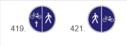 2.17. gājēju un velosipēdu ceļš – atdalīts ceļš vai ceļa daļa, kas paredzēta gājējiem un braukšanai ar velosipēdu vai elektroskrejriteni un apzīmēta ar 419. vai 421. ceļa zīmi;